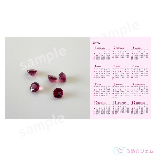 2026年1月~12月の12か月カレンダーです。 写真は、天然石「ロードライトガーネット」です。 PC壁紙や卓上カレンダーなど、利用範囲内でご自由にご利用ください。 ※JPGとPNGの2種類セットです。 2026年1月~12月 vol.1 ・ファイルの種類 JPGファイル 大きさ 1920×1080 サイズ 211KB 解像度 96dpi ビットの深さ 24 ・ファイルの種類 PNGファイル 大きさ 1920×1080 サイズ 1.3MB 解像度 96dpi ビットの深さ 24 ※ダウンロード商品のため、ご購入後の返金・交換・キャンセルはお受けできません。 ※お使いのパソコンやスマホにより、画面の色調が若干異なる場合があります。 また、印刷される場合は、プリンターや用紙によって色調等が異なりますので、 予めご了承ください。 【利用範囲】 個人・法人利用、商用利用が可能です。 使用例 ・ホームページ、ブログに使用 ・SNS投稿に使用 ・PC壁紙、待ち受け、アイコンなど ・マーケティング素材(各種カード、名刺、チラシ、広告 など) ・素材を利用したオリジナルグッズの制作・販売 ・その他 【禁止行為】 素材の著作権を所有しておりますので、下記の行為は禁止とさせていただきます ・素材を無加工の状態で販売、配布、複製 ・商標登録 ・その他法的に認められている引用の範囲を超えた無断転載