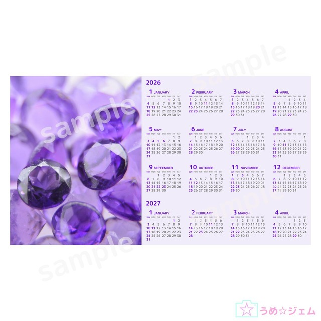 2026年1月~2027年4月の16か月カレンダーです。 写真は、天然石「アメジスト」です。 PC壁紙や卓上カレンダーなど、利用範囲内でご自由にご利用ください。 2026年1月~2027年4月 vol.2 ・ファイルの種類 PNGファイル 大きさ 1920×1080 サイズ 1.4MB 解像度 96dpi ビットの深さ 24 ※ダウンロード商品のため、ご購入後の返金・交換・キャンセルはお受けできません。 ※お使いのパソコンやスマホにより、画面の色調が若干異なる場合があります。 また、印刷される場合は、プリンターや用紙によって色調等が異なりますので、 予めご了承ください。 【利用範囲】 個人・法人利用、商用利用が可能です。 使用例 ・ホームページ、ブログに使用 ・SNS投稿に使用 ・PC壁紙、待ち受け、アイコンなど ・マーケティング素材(各種カード、名刺、チラシ、広告 など) ・素材を利用したオリジナルグッズの制作・販売 ・その他 【禁止行為】 素材の著作権を所有しておりますので、下記の行為は禁止とさせていただきます ・素材を無加工の状態で販売、配布、複製 ・商標登録 ・その他法的に認められている引用の範囲を超えた無断転載