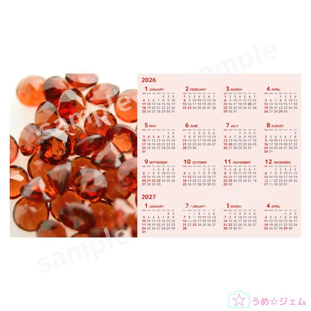 2026年1月~2027年4月の16か月カレンダーです。 写真は、天然石「ガーネット」です。 PC壁紙や卓上カレンダーなど、利用範囲内でご自由にご利用ください。 ※JPGとPNGの2種類セットです。 2026年1月~2027年4月 vol.1 ・ファイルの種類 JPGファイル 大きさ 1920×1080 サイズ 296KB 解像度 96dpi ビットの深さ 24 ・ファイルの種類 PNGファイル 大きさ 1920×1080 サイズ 1.8MB 解像度 96dpi ビットの深さ 24 ※ダウンロード商品のため、ご購入後の返金・交換・キャンセルはお受けできません。 ※お使いのパソコンやスマホにより、画面の色調が若干異なる場合があります。 また、印刷される場合は、プリンターや用紙によって色調等が異なりますので、 予めご了承ください。 【利用範囲】 個人・法人利用、商用利用が可能です。 使用例 ・ホームページ、ブログに使用 ・SNS投稿に使用 ・PC壁紙、待ち受け、アイコンなど ・マーケティング素材(各種カード、名刺、チラシ、広告 など) ・素材を利用したオリジナルグッズの制作・販売 ・その他 【禁止行為】 素材の著作権を所有しておりますので、下記の行為は禁止とさせていただきます ・素材を無加工の状態で販売、配布、複製 ・商標登録 ・その他法的に認められている引用の範囲を超えた無断転載