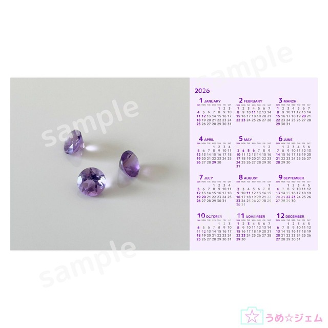 2026年1月~12月の12か月カレンダーです。 写真は、天然石「アメジスト」です。 PC壁紙や卓上カレンダーなど、利用範囲内でご自由にご利用ください。 2026年1月~12月 vol.2 ・ファイルの種類 PNGファイル 大きさ 1920×1080 サイズ 1.3MB 解像度 96dpi ビットの深さ 24 ※ダウンロード商品のため、ご購入後の返金・交換・キャンセルはお受けできません。 ※お使いのパソコンやスマホにより、画面の色調が若干異なる場合があります。 また、印刷される場合は、プリンターや用紙によって色調等が異なりますので、 予めご了承ください。 【利用範囲】 個人・法人利用、商用利用が可能です。 使用例 ・ホームページ、ブログに使用 ・SNS投稿に使用 ・PC壁紙、待ち受け、アイコンなど ・マーケティング素材(各種カード、名刺、チラシ、広告 など) ・素材を利用したオリジナルグッズの制作・販売 ・その他 【禁止行為】 素材の著作権を所有しておりますので、下記の行為は禁止とさせていただきます ・素材を無加工の状態で販売、配布、複製 ・商標登録 ・その他法的に認められている引用の範囲を超えた無断転載