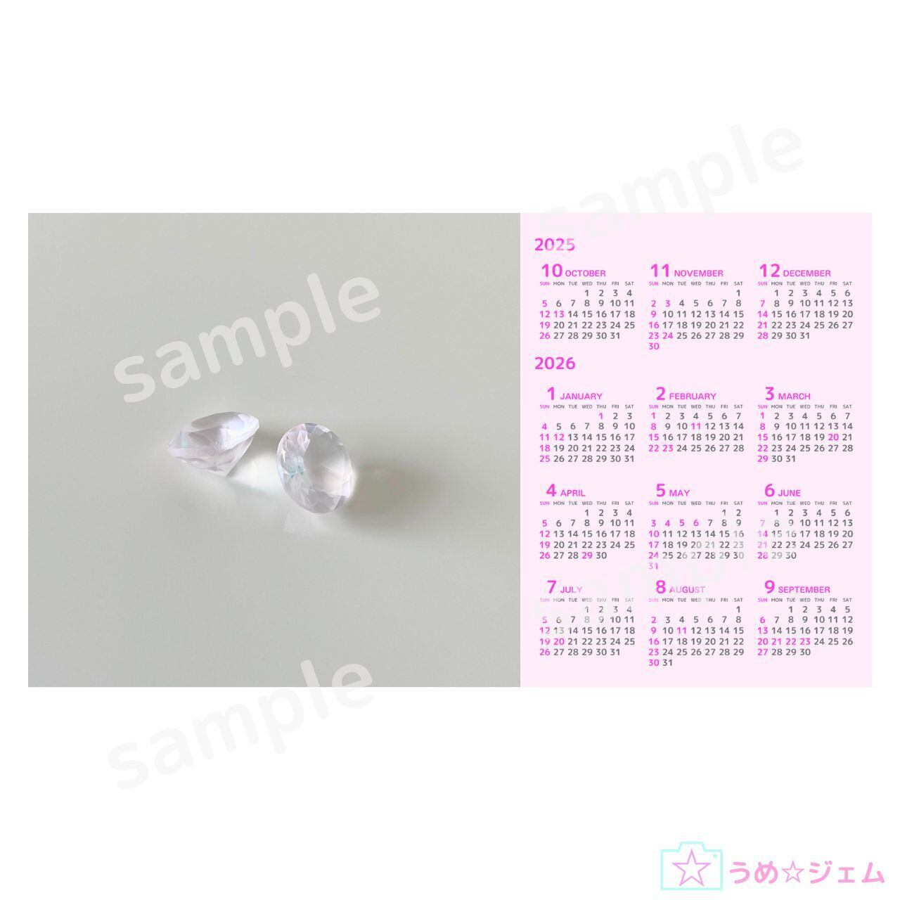 2025年10月~2026年9月の12か月カレンダーです。