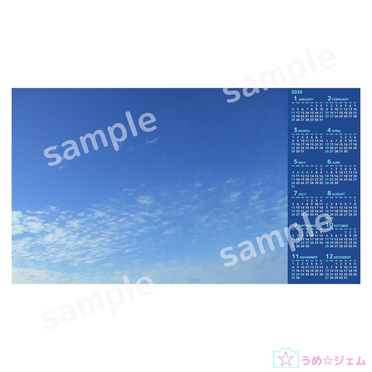 PC壁紙 カレンダー《2026年1月~12月 vol.4》 1920×1080(JPGファイル)