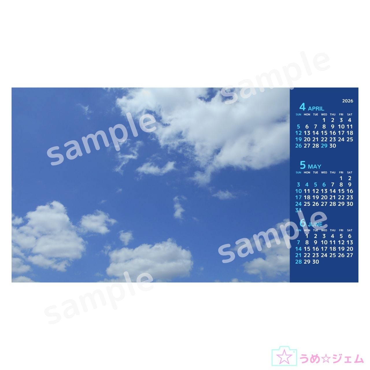 PC壁紙 カレンダー《2026年4月~6月 vol.1》 1920×1080(JPGファイル)